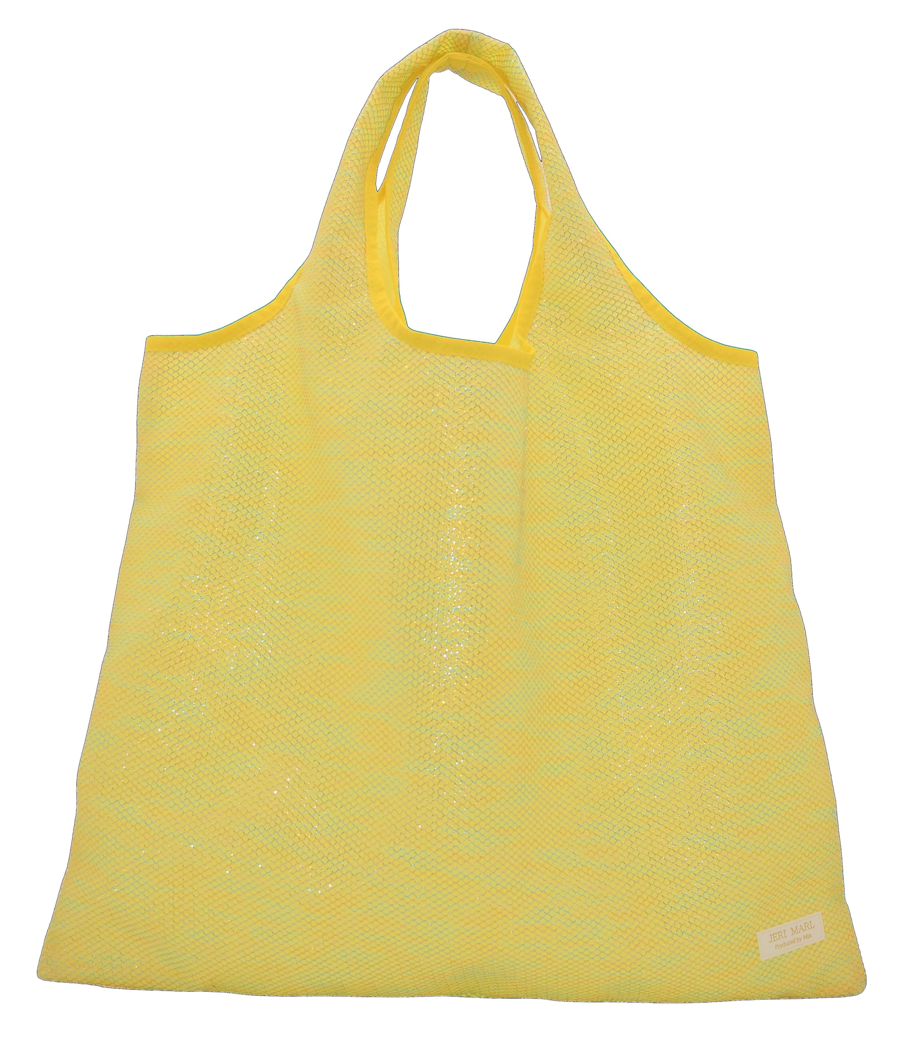 [JERI MARL] 撥水 キラキラ 透けない メッシュ ナイロン トート バッグ Lサイズ (イエロー) 折りたたみ 工房 手作り 日本製 エコパッケージ MX-0012-155