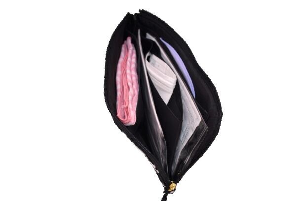 ポーチ内は5ポケットありますので、同時に、新品マスク、使用中マスク、清潔に保ちたいハンカチなどの収納できて便利です。