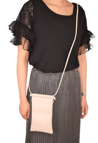 コンパクトなサイズでも大き目のスマートフォンも入る大きさのミニサイズショルダーポーチです。