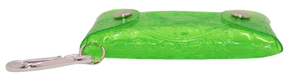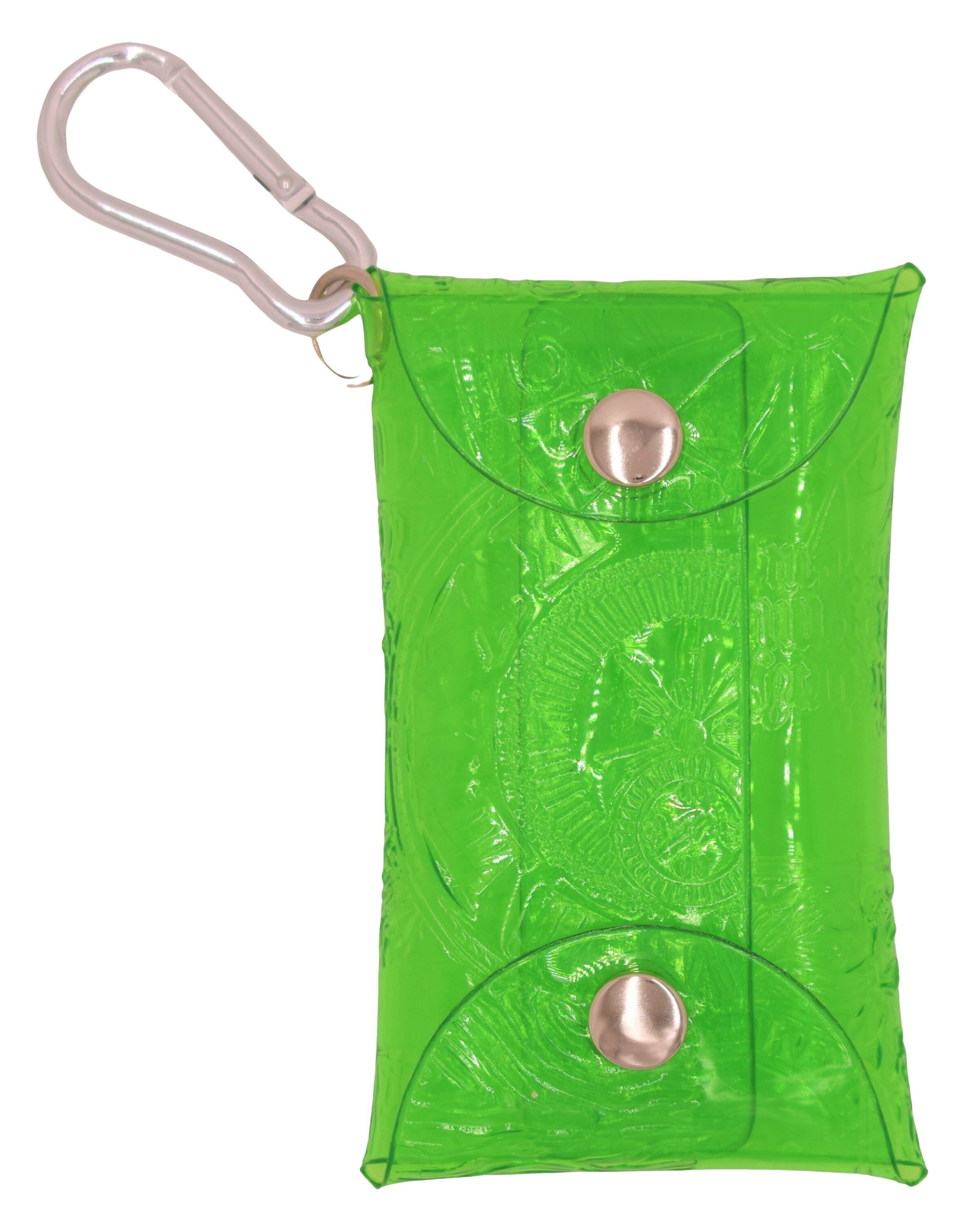 エンボス(ラベル柄) クリアケース 小物 透明 持ち運び (グラスグリーン) カラビナ付 ポーチ 工房 手作り 日本製 エコパッケージ MX-0023-195