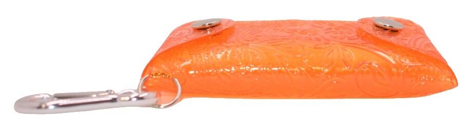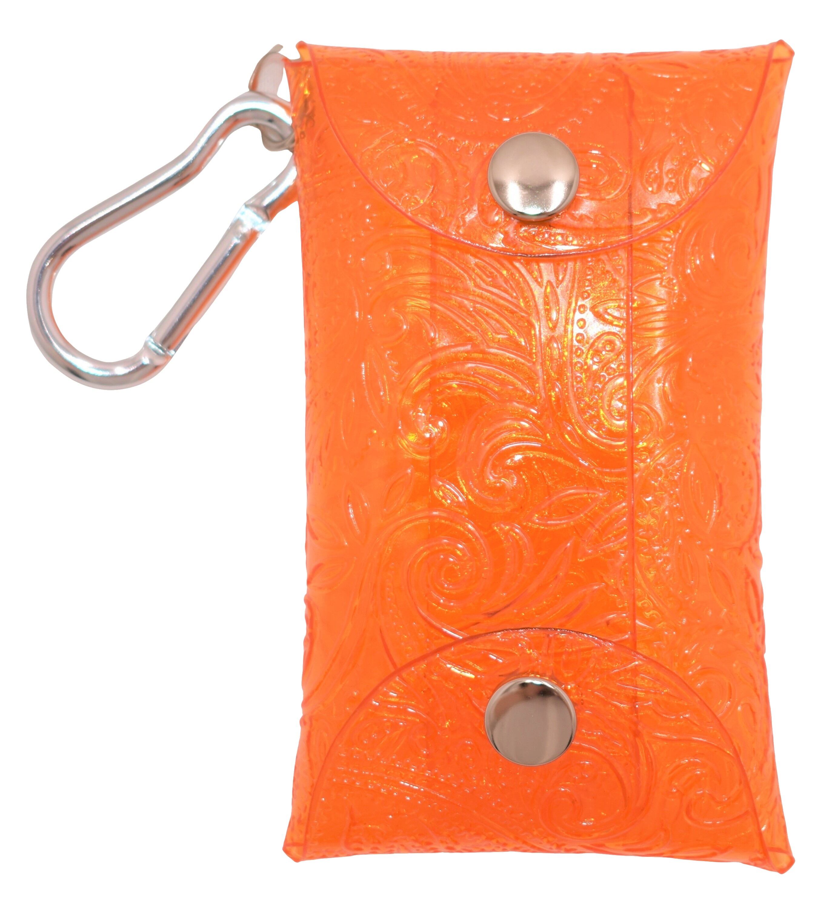 エンボス (ペイズリー柄) クリアケース 小物 透明 持ち運び (オレンジ) カラビナ付 ポーチ 工房 手作り 日本製 エコパッケージ MX-0025-203