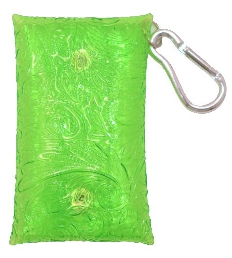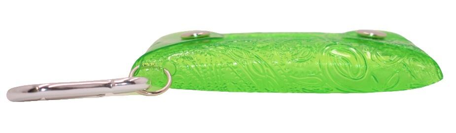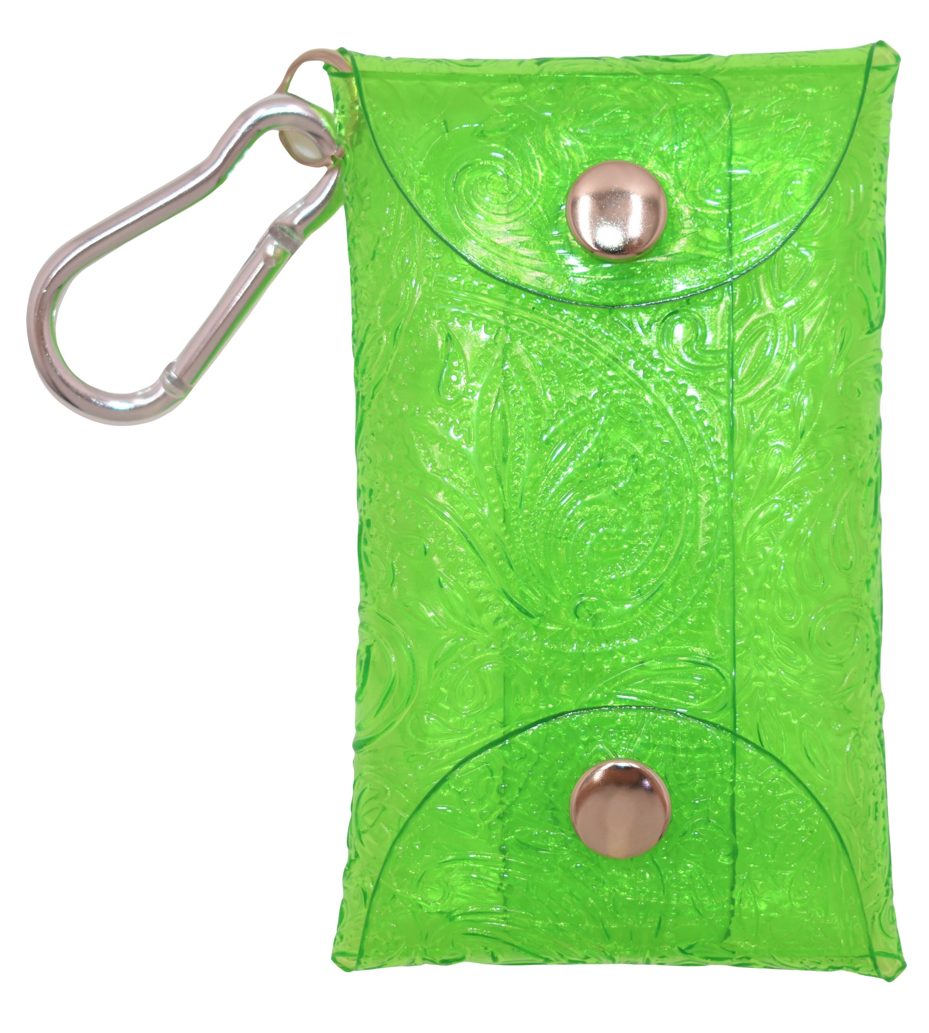 エンボス (ペイズリー柄) クリアケース 小物 透明 持ち運び (グラスグリーン) カラビナ付 ポーチ 工房 手作り 日本製 エコパッケージ MX-0025-205