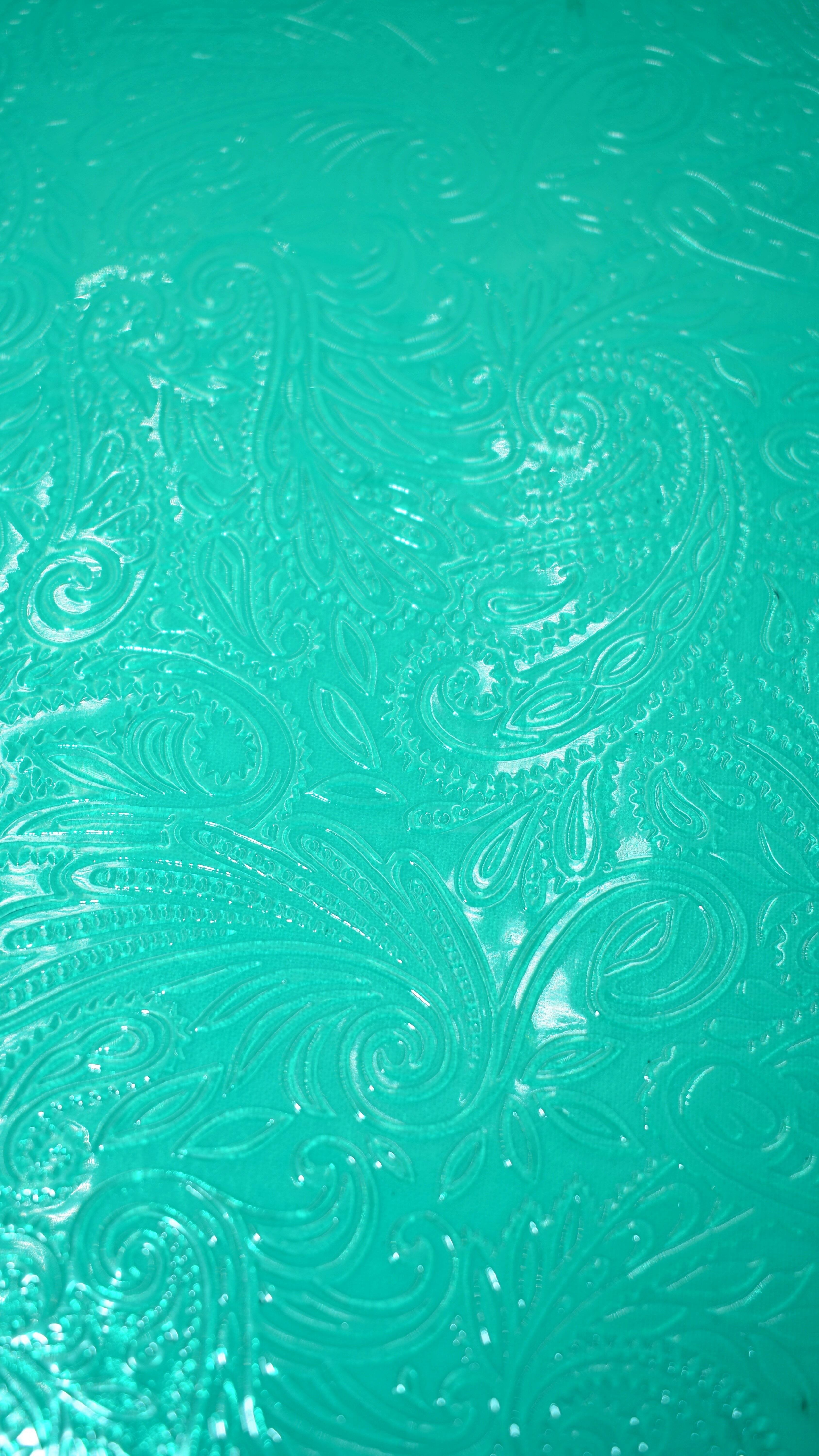 15色展開のカラーとペイズリー絵柄の型押し仕様です。