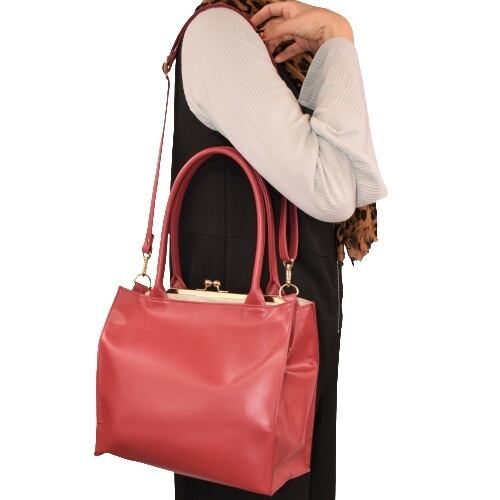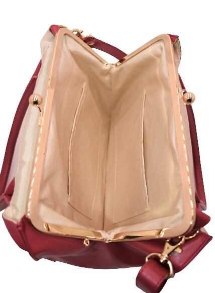 [JERI MARL] がま口 ハンドバッグ (ワイン) ショルダー レディース 工房 手作り 日本製 エコパッケージ MX-0027-225
