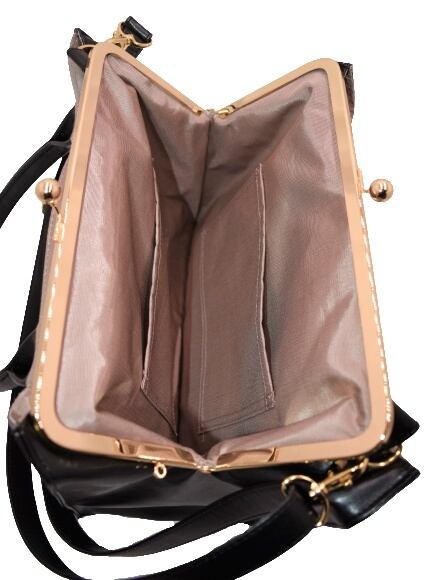 [JERI MARL] がま口 ハンドバッグ (ブラック) ショルダー レディース 工房 手作り 日本製 エコパッケージ MX-0027-223