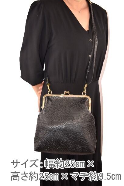 [JERI MARL] がま口 型押しバッグ エンボス (クロコダイル) (パープル) ショルダー レディース 工房 手作り 日本製 エコパッケージ MX-0030-239