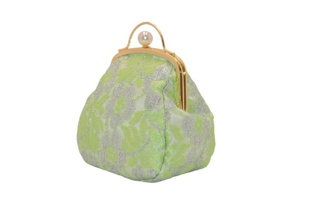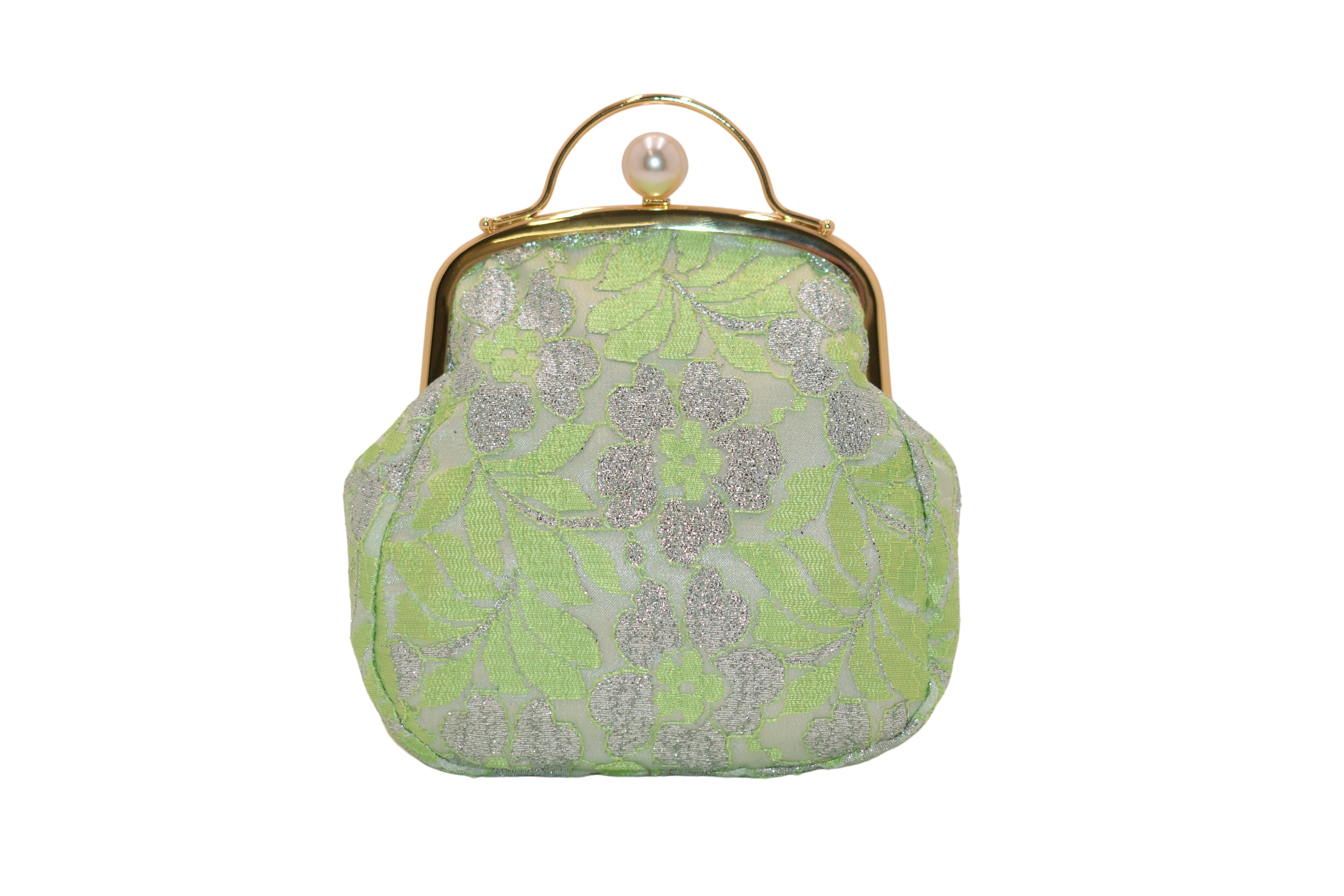 [JERI MARL] がま口 ポーチ レース 意匠登録 (グリーン) 工房 手作り 日本製 エコパッケージ MX-0032-246
