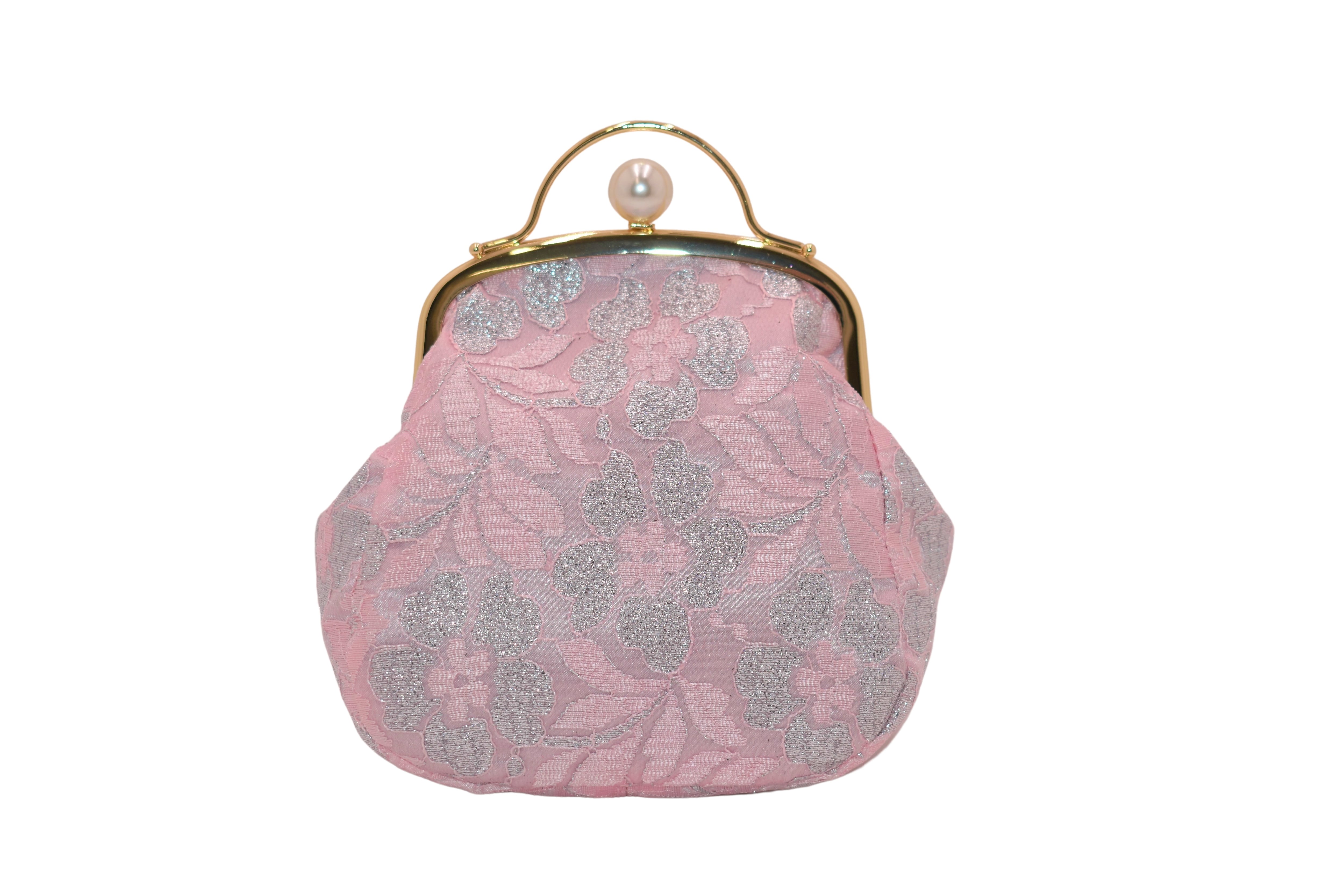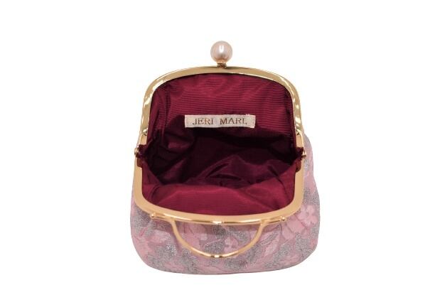 [JERI MARL] がま口 ポーチ レース 意匠登録 (ピンク) 工房 手作り 日本製 エコパッケージ MX-0032-245
