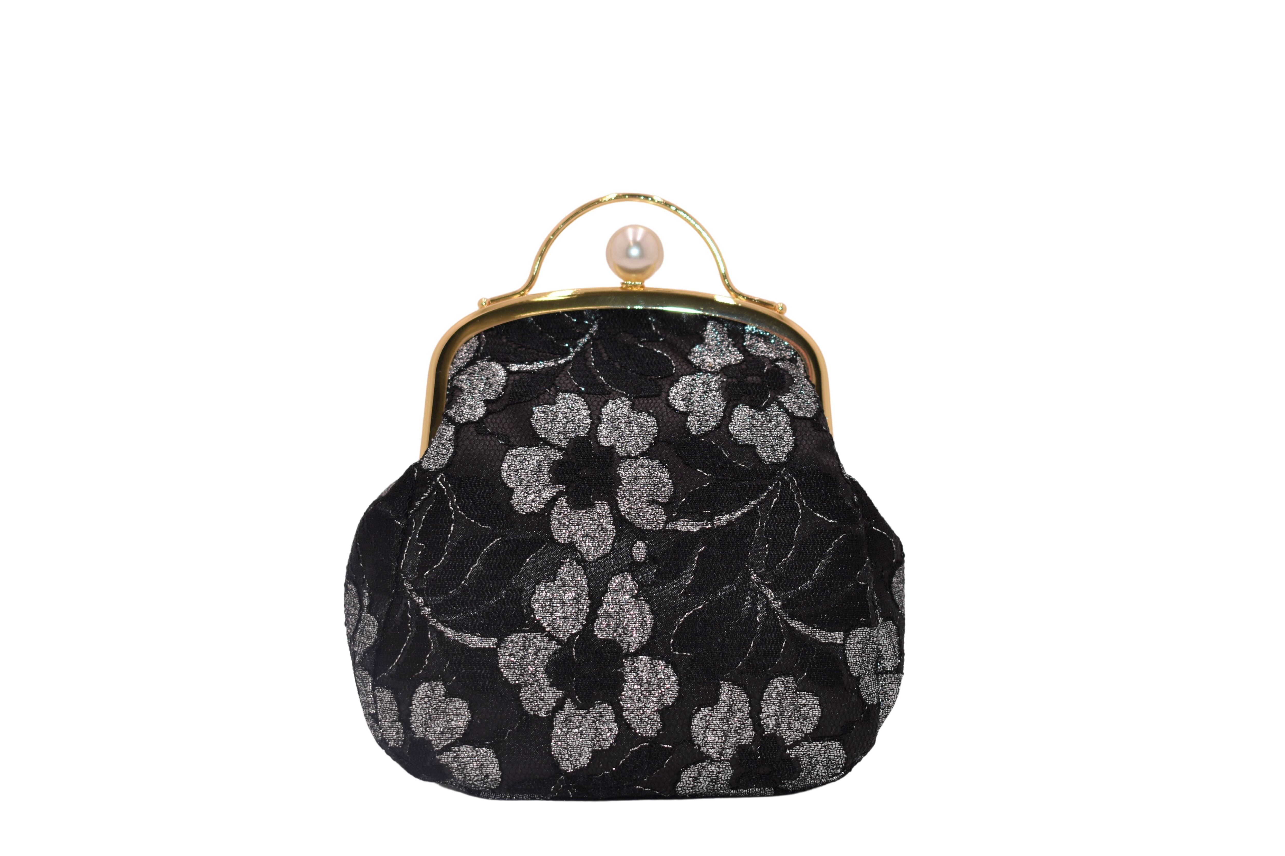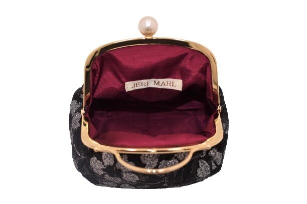 [JERI MARL] がま口 ポーチ レース 意匠登録 (ブラック) 工房 手作り 日本製 エコパッケージ MX-0032-247