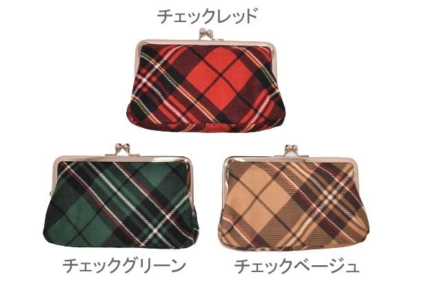 がま口 財布 角型 (チェックグリーン) 小銭入れ レトロ 工房 手作り 日本製 エコパッケージ MX-0035-281