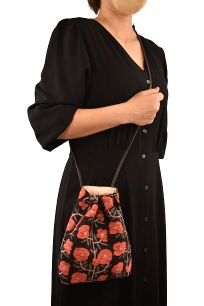 サコッシュ 小さめ 巾着型 伸び縮み紐 (ブラック) ショルダーバッグ 斜め肩掛け 工房 手作り 日本製 エコパッケージ MX-0037-309