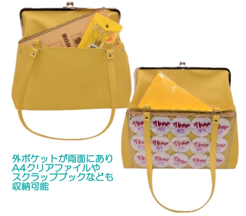 A4のクリアケースや応援うちわ、500mlのペットボトルも収納可能な大きさ。 外ポケットが両面にありA4クリアファイルやスクラップブックなども収納可能。